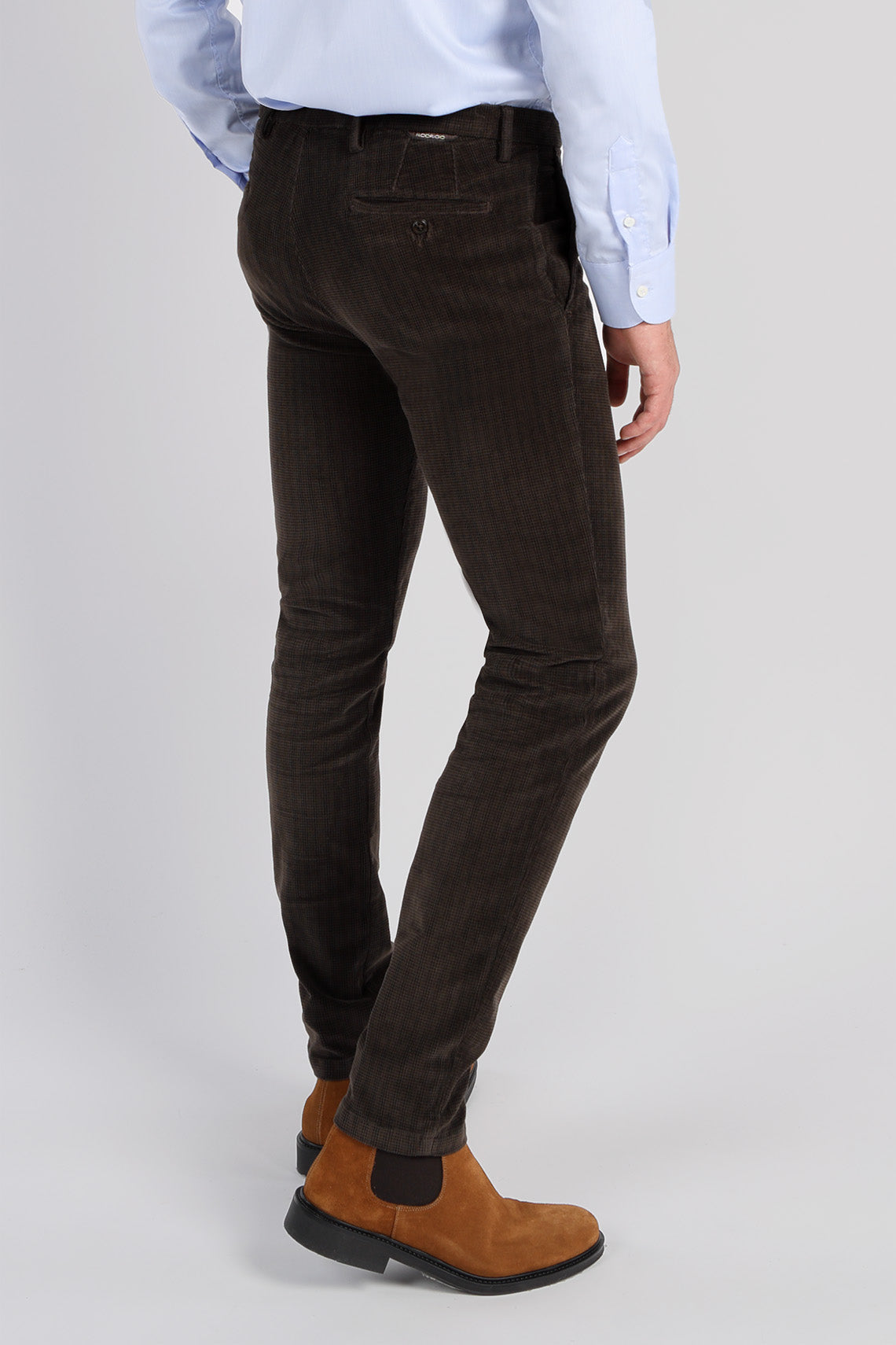 Pantalone chino in velluto stampato stretch tinto capo slim fit