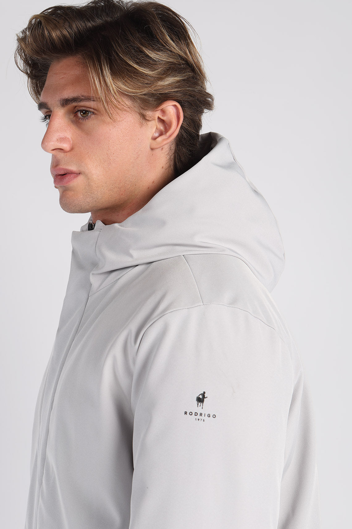 Realizzato in tessuto poly-stretch, questo parka è resistente, leggero e leggermente elasticizzato, garantendo libertà di movimento. La caratteristica distintiva è il cappuccio con imbottitura interna staccabile, che permette di regolare il calore e la vestibilità in base alle necessità. La vestibilità custom assicura una silhouette moderna e sagomata, anche in un capo lungo.